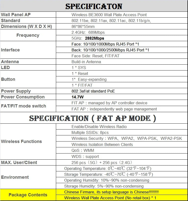 3571Mbps in Wall AP WiFi7 project Indoor AP 802.11be Access Point 2.4GHz 689M 5GHz 2882M, BE3600 WiFi 7 Panel AP, 2.5G RJ45 Port