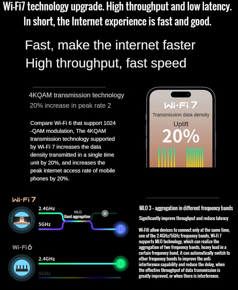 4* 2.5G RJ45 WAN/LAN Ports BE7200 7200Mbps WiFi7 Wireless Mesh Router Dual-Frequency Wi-Fi 7 802.11be WiFi 7 USB3.0 CPU 1.5GHz