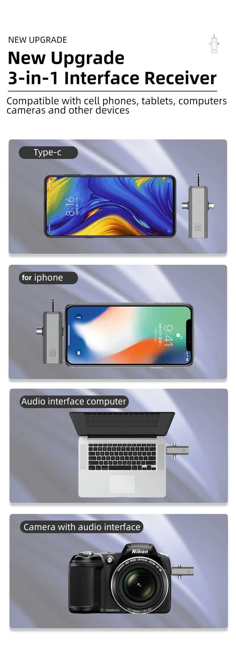 4 In 1 Lavalier Wireless Microphone Noise Reduction Professional Mic for Mobile Phone Camera Speaker Computer Live