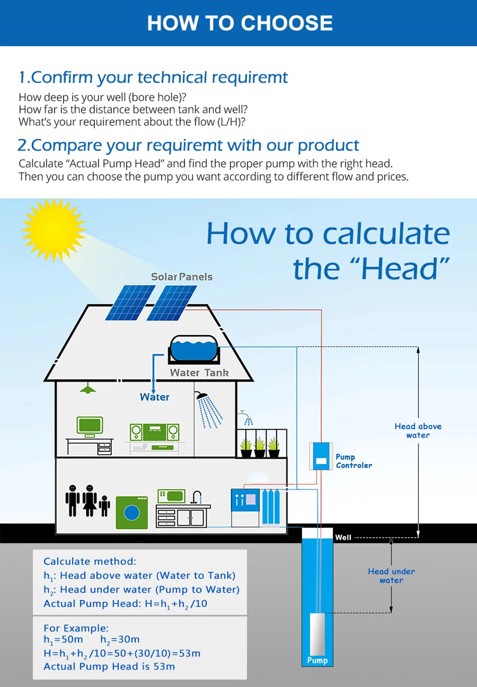 600W DC48V Solar Deep Well Pump with MPPT Controller 100% Stainless Steel Impeller Solar PV Submersible Pump 4"MaxFlow 7m³/H 40M