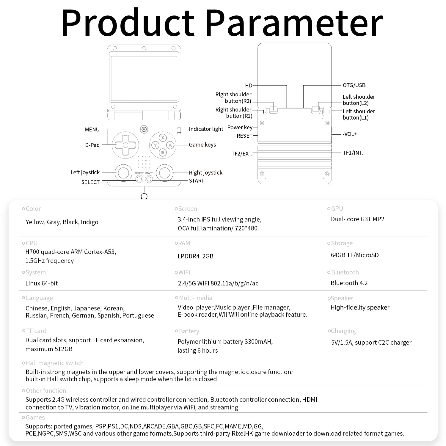 Anbernic RG34XXSP Flip Video Game Consoles 3.4'' IPS Screen TV Output Linux System Hall Magnetic Flip Cover Gaming Player Gifts