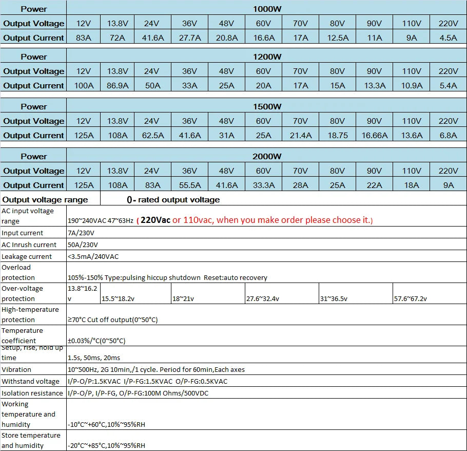 Output: 12V 24V 36V 48V 55V 110V 220V 300V 350VDC