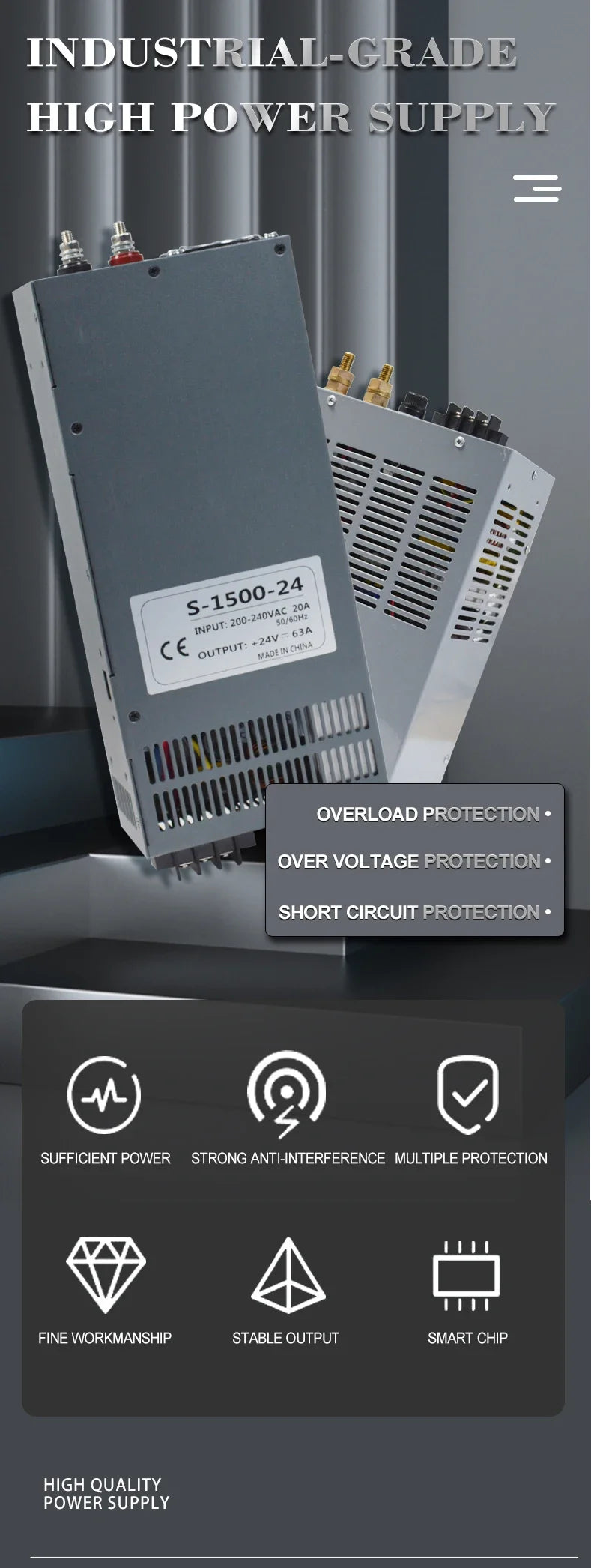 CHUX 1000W 1200W 1500W 2000W Industrial Switching Power Supply Adjustable Dc 12V 24V 36V 48V 55V 110V 220V 300V 350V DC Smps