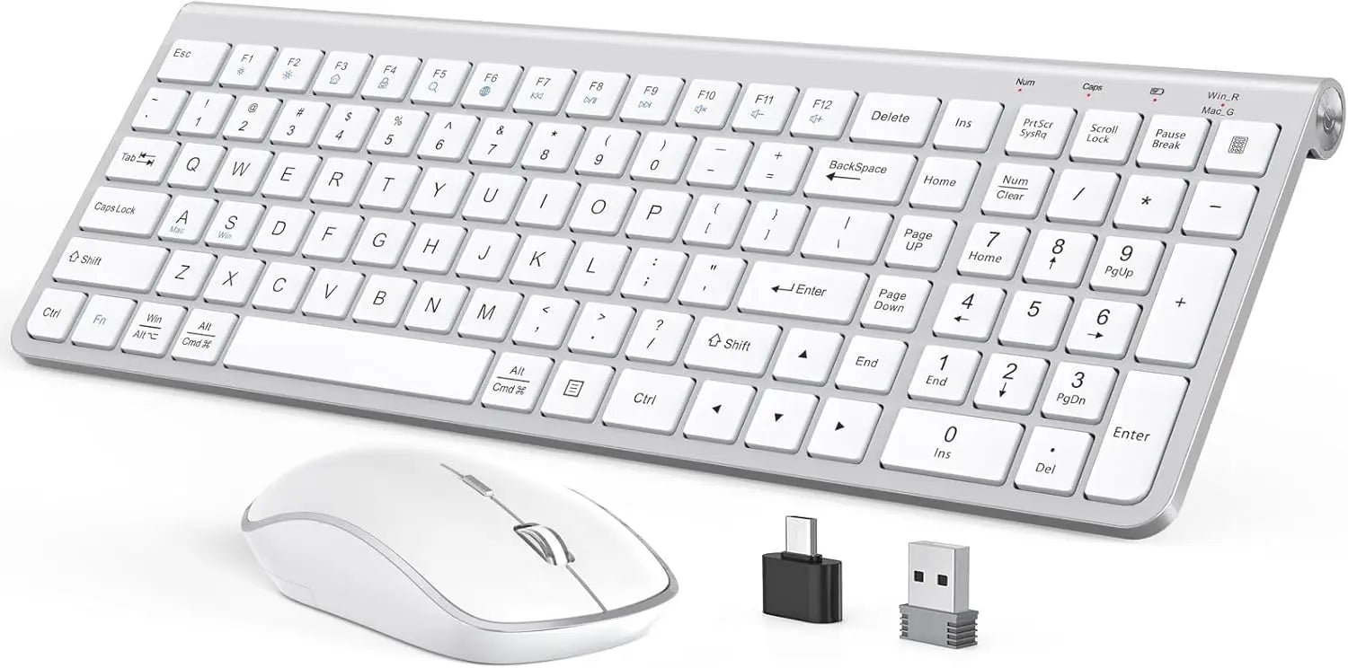 Ergonomic wireless keyboard and mouse, AZERTY, France, quiet and portable, including USB-A and USB-C ports, suitable for Mac/PC/