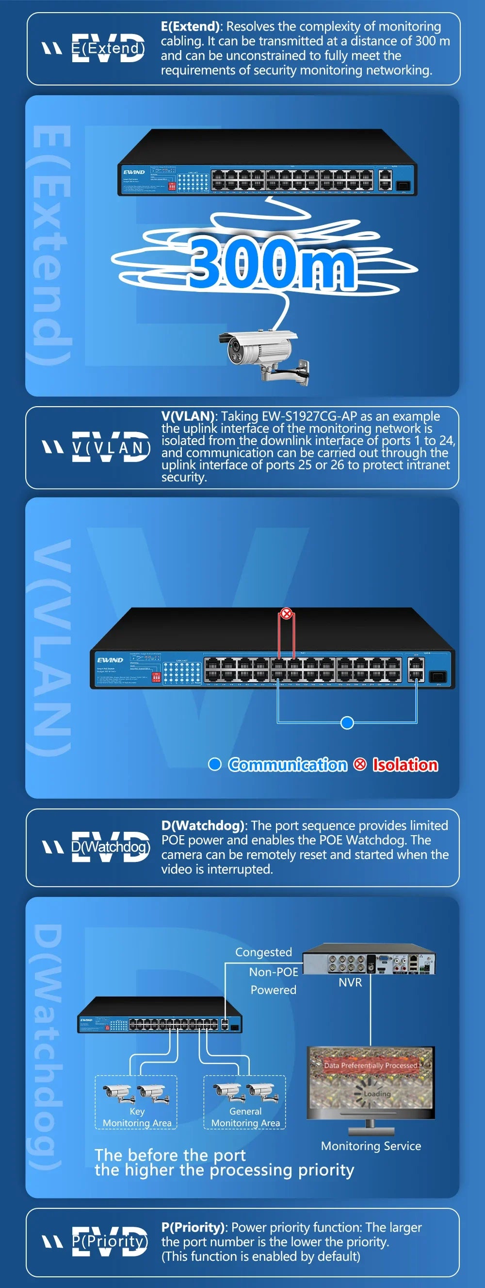 EWIND Gigabit POE Switch 16/48 Ports 10/100/1000Mbps Full Gigabit Ethernet Switch Unmanagement AI Smart Switch outdoor home NVR