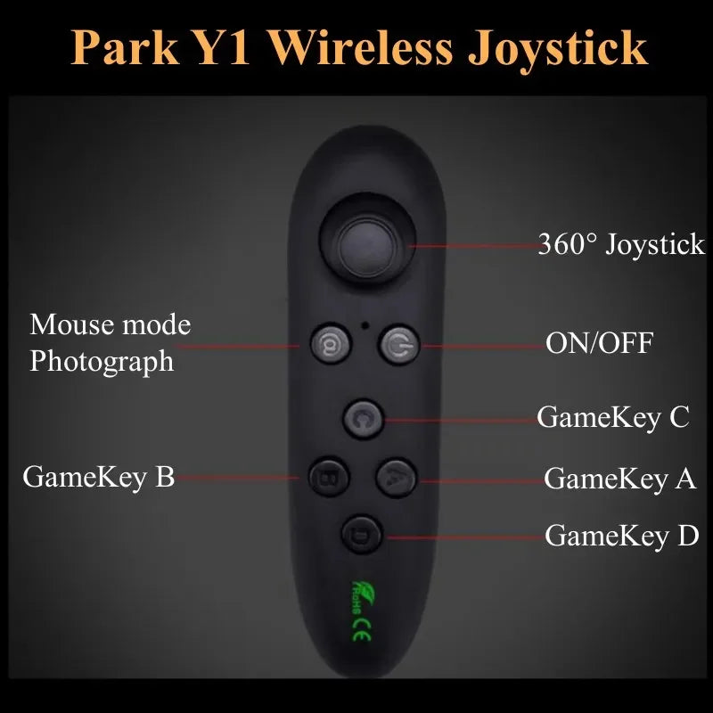 The G02EF Virtual Reality VR Glasses deliver an immersive cinematic experience with a 96-degree field of view, equivalent to viewing a 1050-inch screen from 3 meters away. Compatible with iOS and Android smartphones ranging from 4.5 to 6.53 inches, these binocular VR headset glasses feature a wireless Bluetooth gamepad controller with joystick and multi-function remote capabilities. The package includes everything needed for 3D virtual reality gaming and IMAX-quality movie viewing. Designed for broad device compatibility across tablets, PCs, and Android systems, the Shinecon G02EF offers accessible virtual reality entertainment without requiring base stations or external batteries.