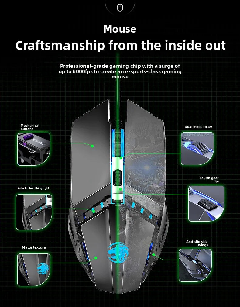 Gaming Wired Mechanical Keyboard Mouse Set Rainbow Glow Backlight 104 Keys Metal Panel Mechanical Keyboard for Laptop Desktop