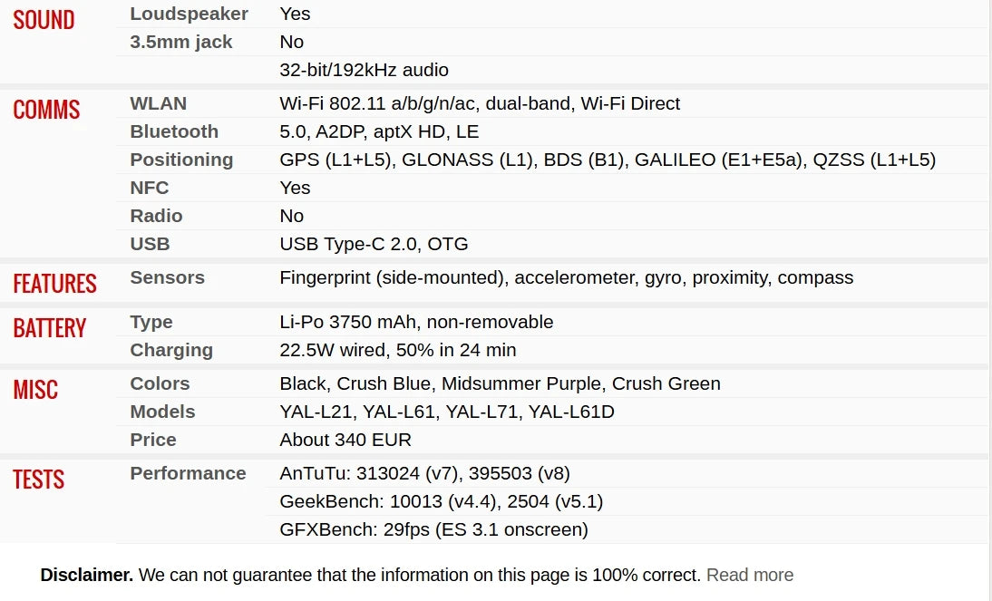 Huawei Model: Nova 5T