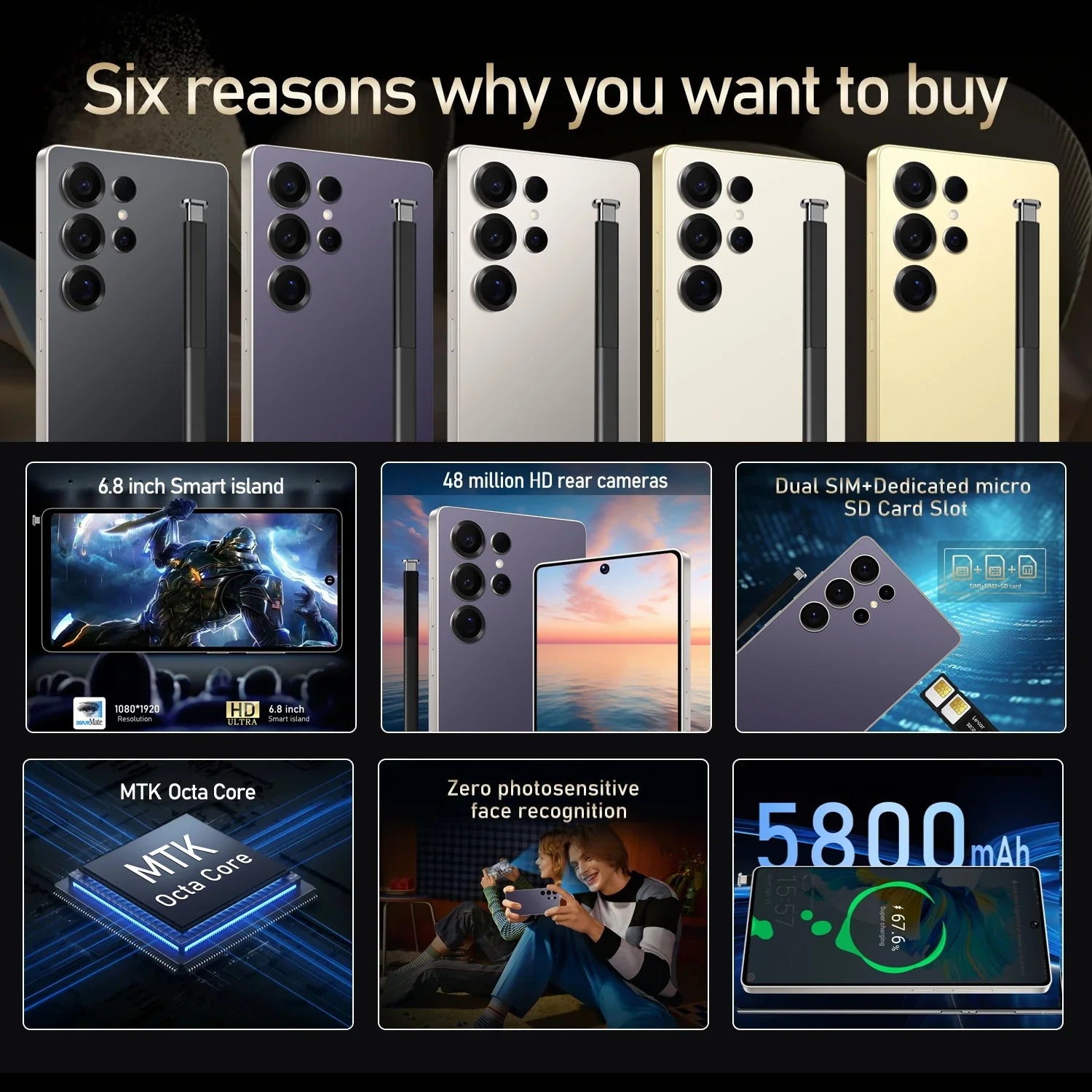 Global Vision S25 Ultra Smartphone 5G Android 12 8GB RAM 512GB ROM 6.8 Inch Phone 1920x1080HD 24+48MP 4 5G Network Mobile Phones