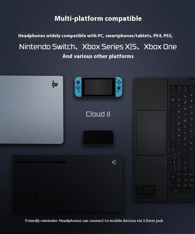 HyperX Cloud 2 II Gaming Headset Hi-Fi 7.1 Surround Sound Detachable 8 Microphone With USB sound card