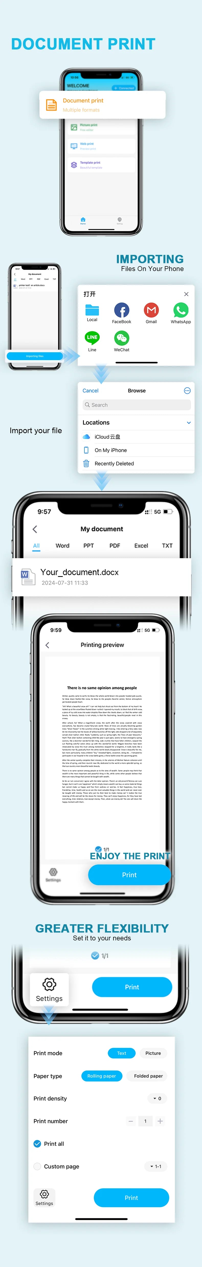 Inkless Portable A4 Thermal Printer Bluetooth PDF Excel Word Document Printing Machine Paper Roll For Office Work Home School