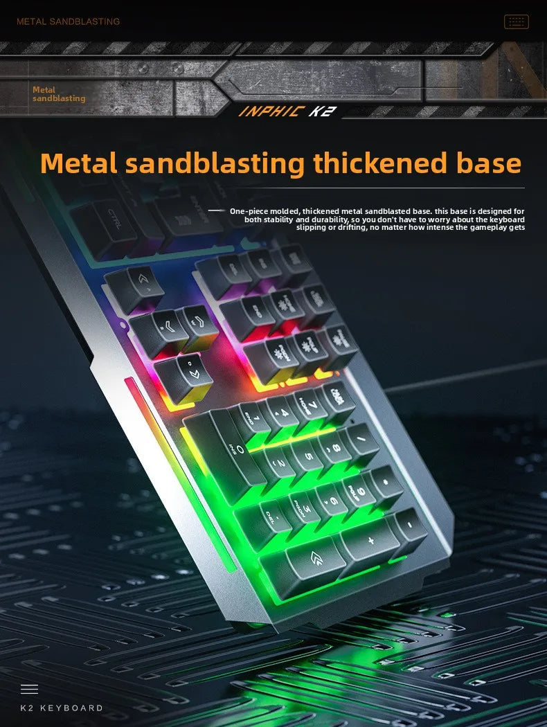 K2 Wired Keyboard Mouse Set Metal Panel RGB Backlight Waterproof Ergonomic Multimedia Buttons 104 Keys Keyboard for Game Office