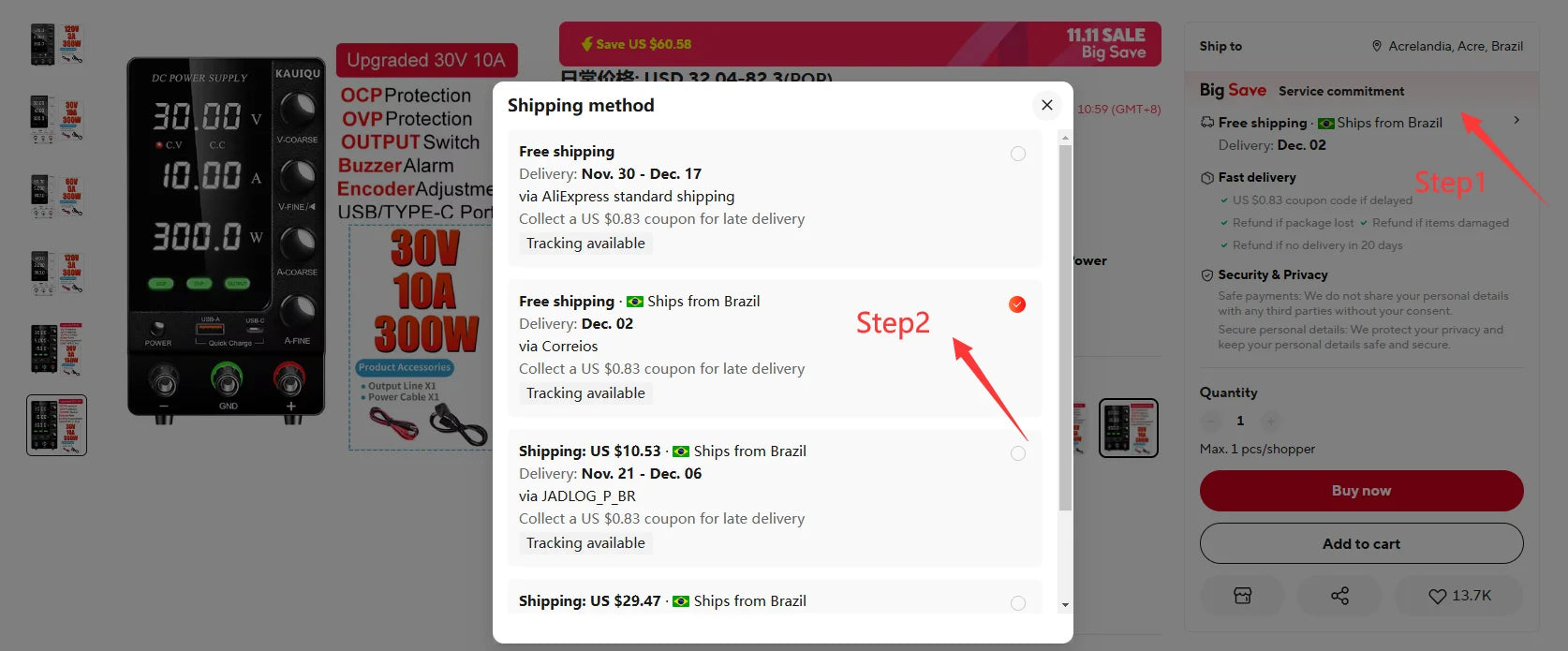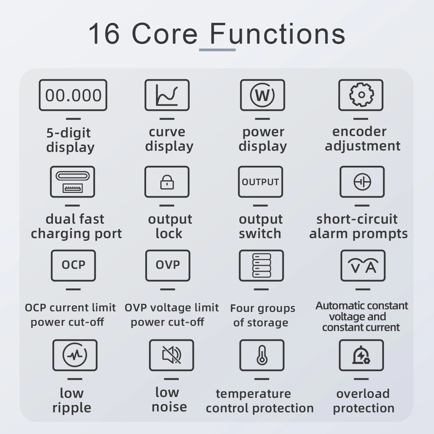 KUAIQU 5 Digits Programmable Adjustable Power Supply 30V 10A,Battery Simulation Tester,Real time Curve Display Voltage Current