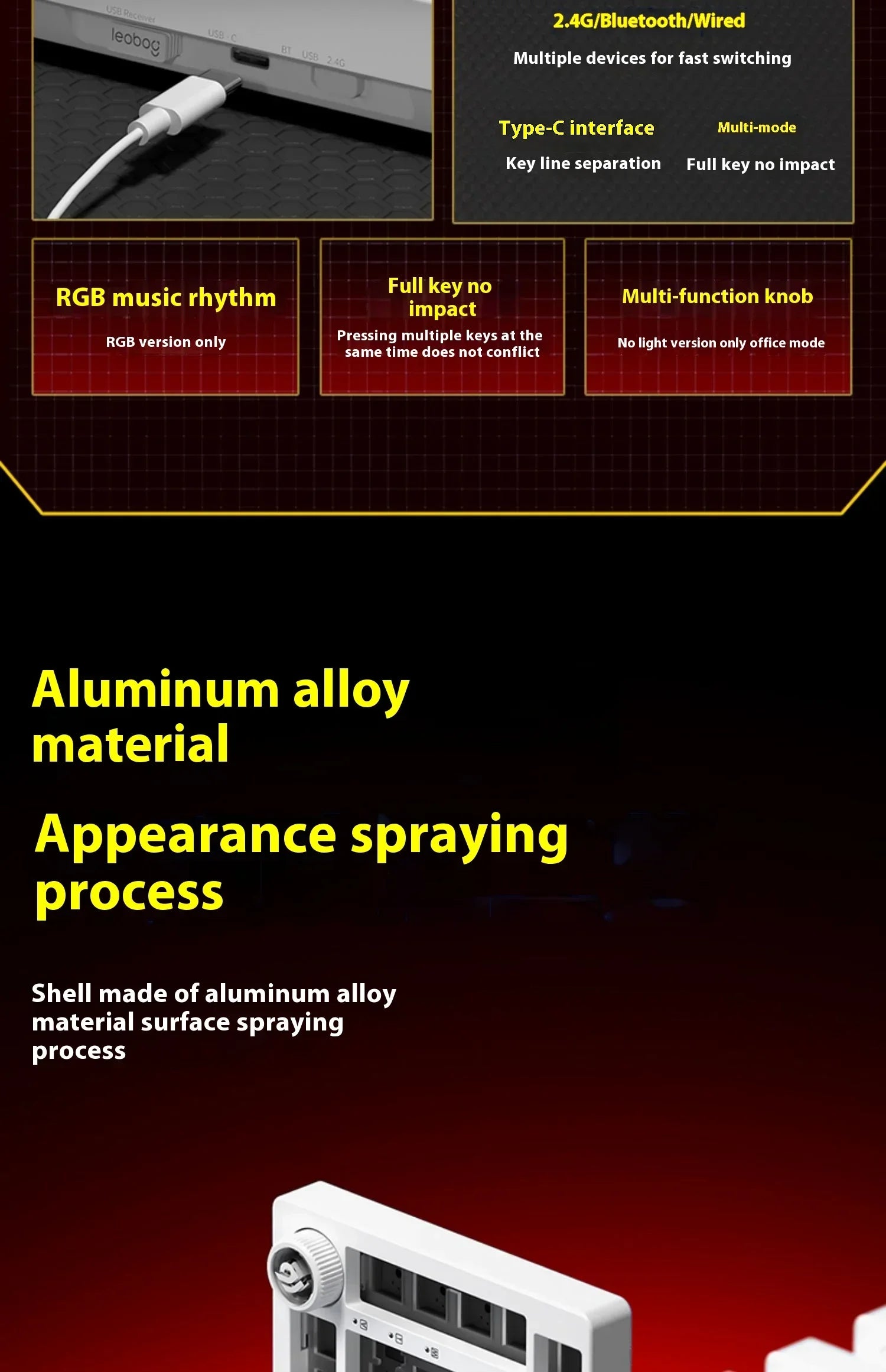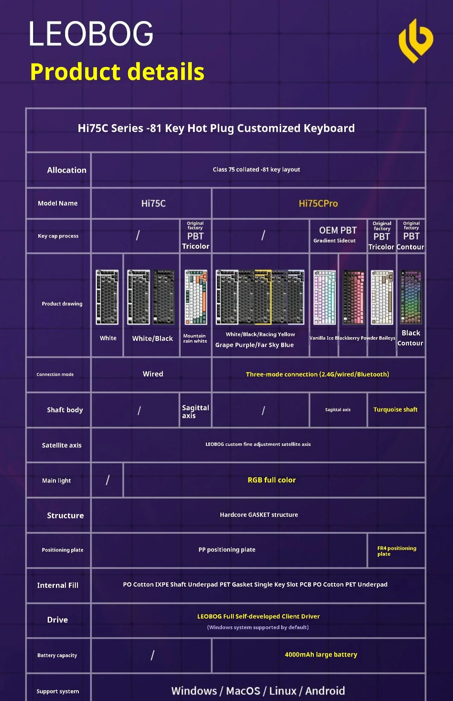 Leobog Hi75C Gaming Aluminum Wireless Mechanical Keyboard Kit Hi75 Hi75C Pro 81Keys Bluetooth 2.4G Wired Hotswap Gamer Keyboard