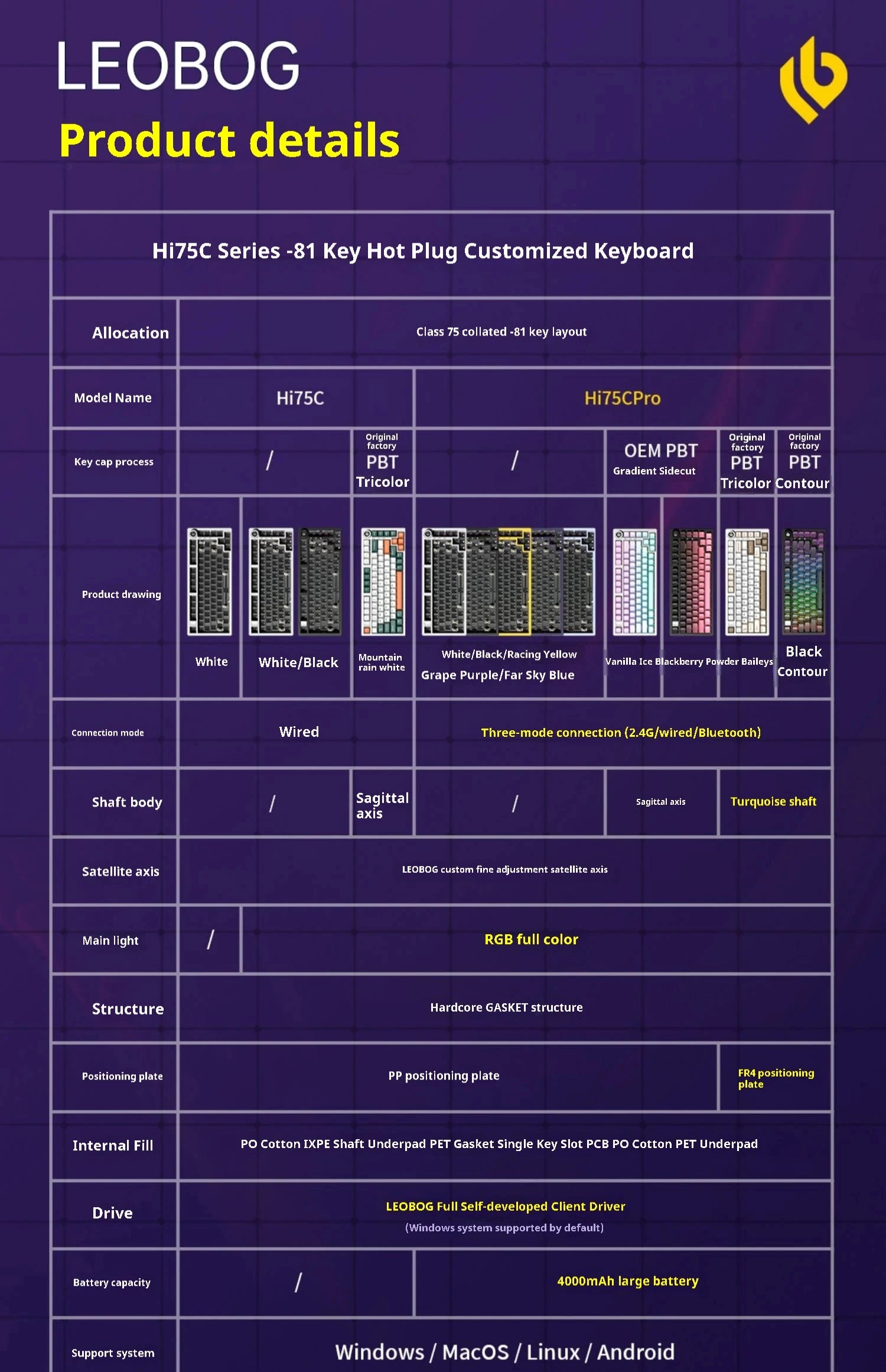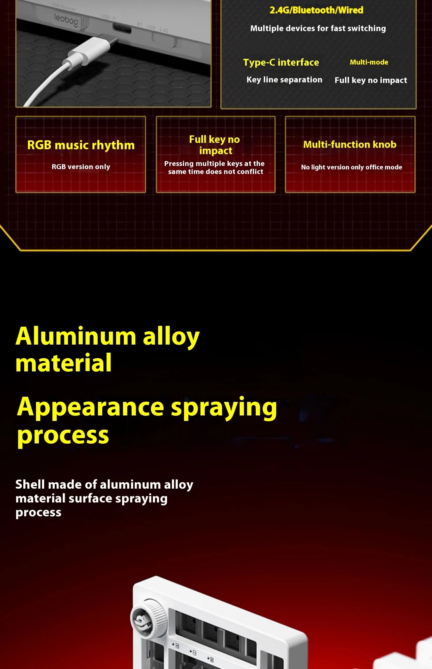 LEOBOG Hi75C Pro Hi75 Sugar65 Custom Mechanical Keyboard Aluminum Kits Hot Swap Wired Gaming Keyboard RGB Gamer Gasket Keyboard
