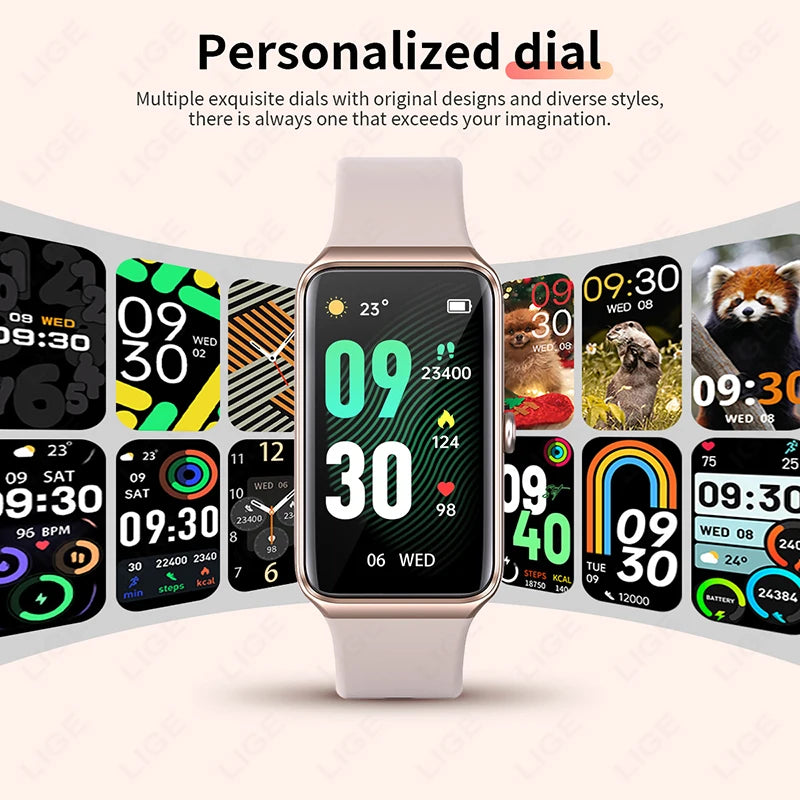 LIGE New 1.47” HD Smart Watch Women's Sports Fitness Bracelet Thermometer Health Monitor Waterproof Women Smartwatch for Xiaomi