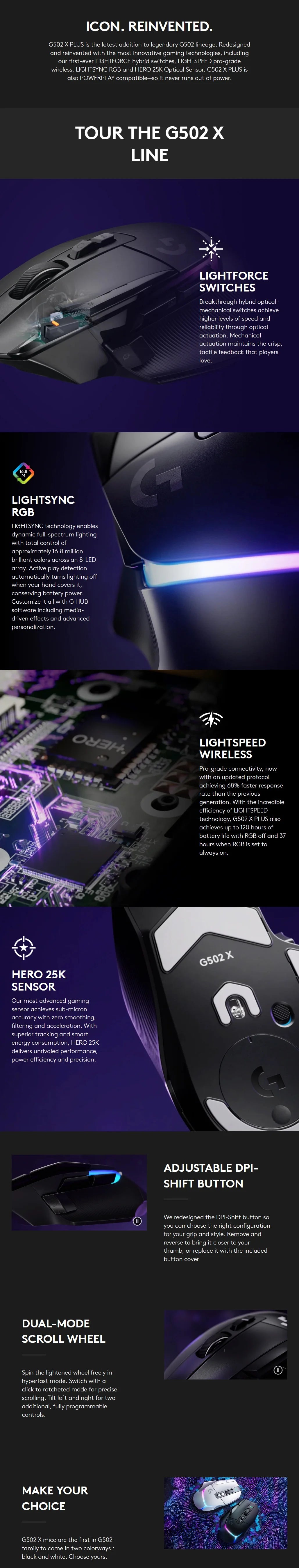 Logitech G502X Wired / LIGHTSPEED Wireless Mouse Advanced New Optical Mechanical Hybrid Microswitch HERO 25K Engine Gaming Mouse