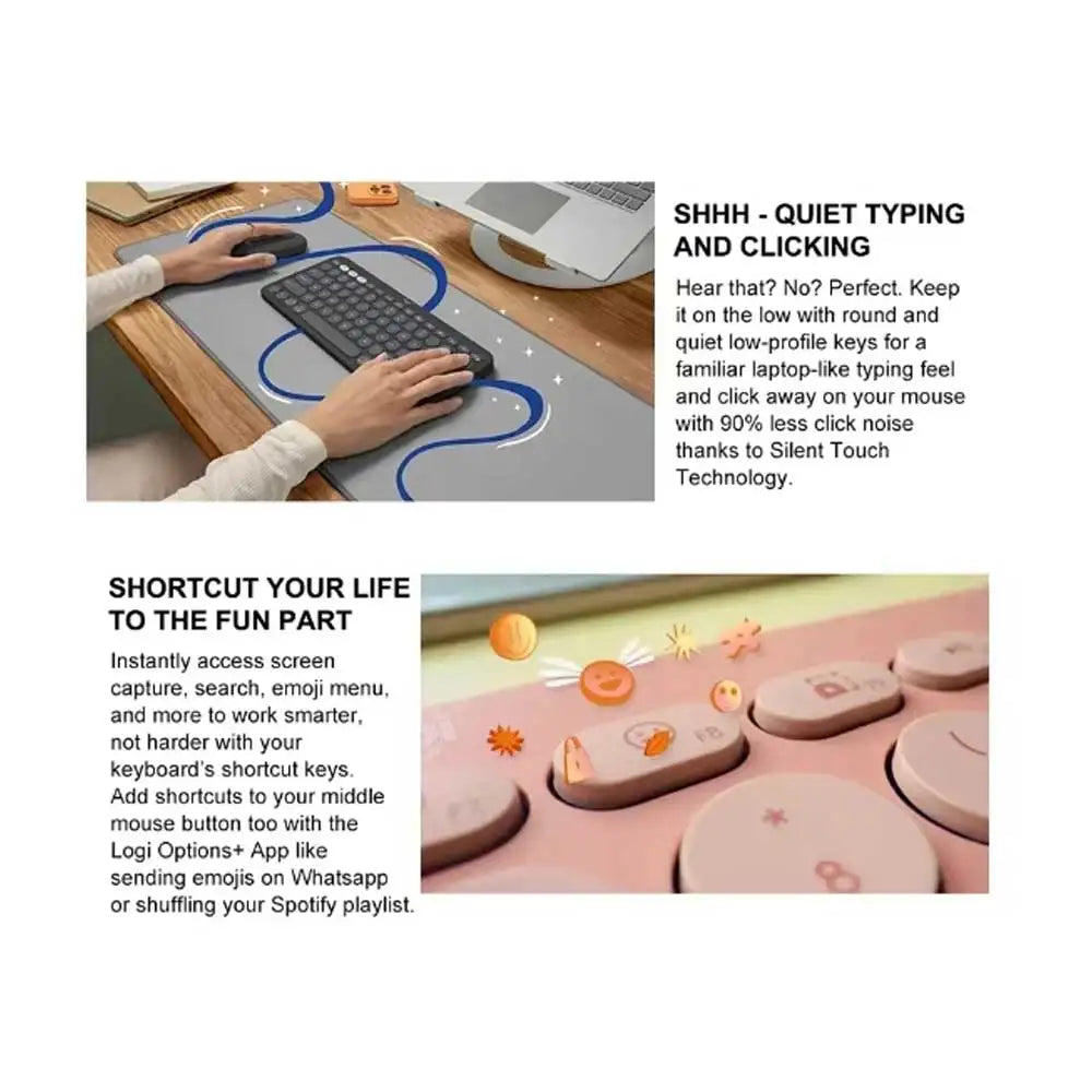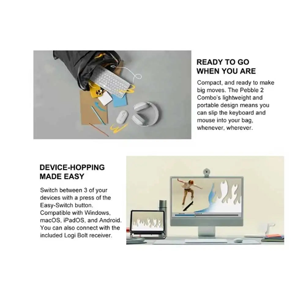 Logitech PEBBLE 2 COMBO Wireless Keyboard Mouse Combos Set Home Office Quiet Mouse Keyboard For Windows Pad Android IOS