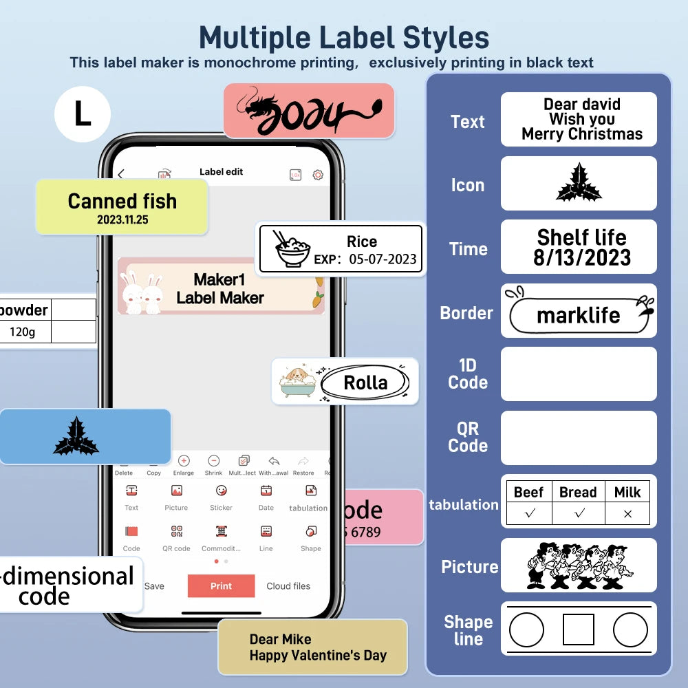 Marklife Mini Smart Label Printer B1 D110 B21 M1 Bluetooth Inkless Sticker Printer For Office Kitchen School To Gift/Marking