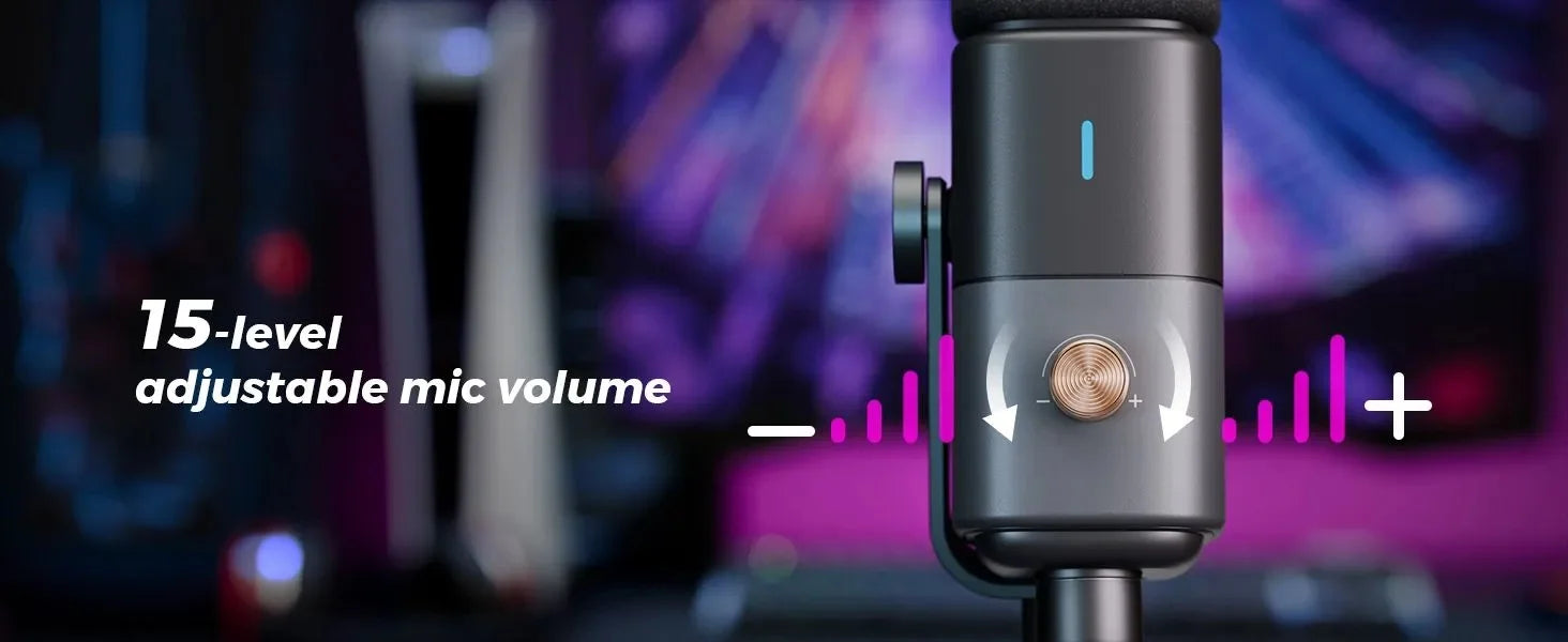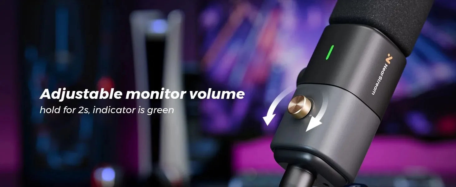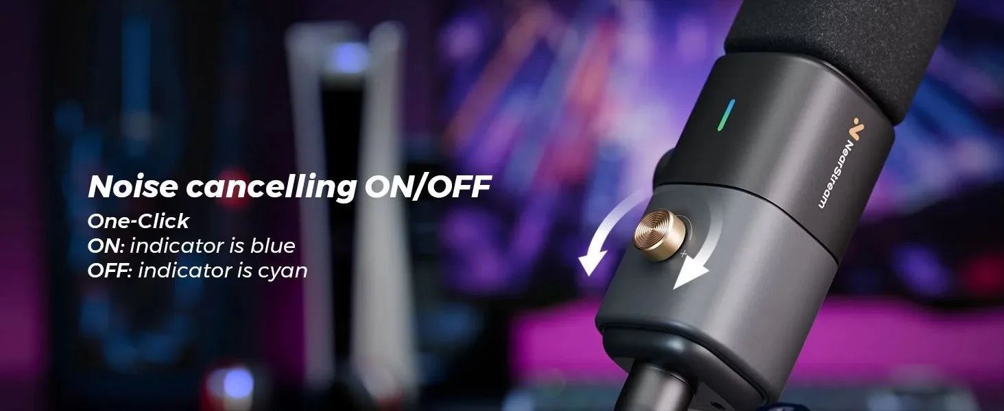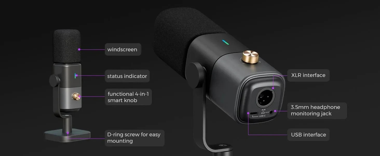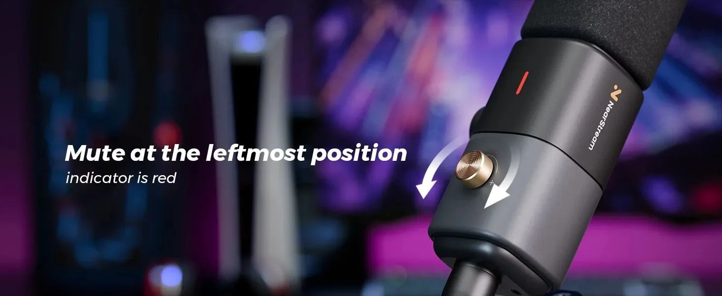 Smart Controls: 4-in-1 knob for gain, mute, and noise canceling
