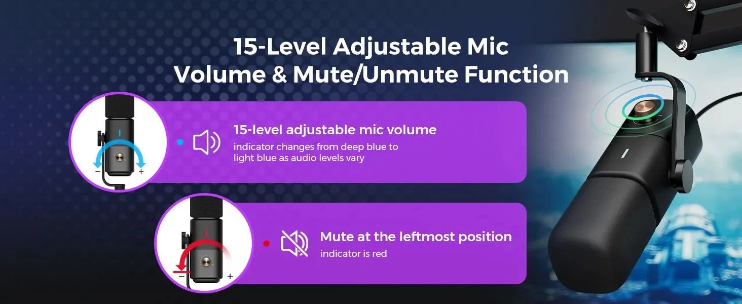NearStream Dynamic XLR USB Mic Desktop Professional Microphone Plug-and-Play for Gaming Studio Streaming Podcast Recording pc