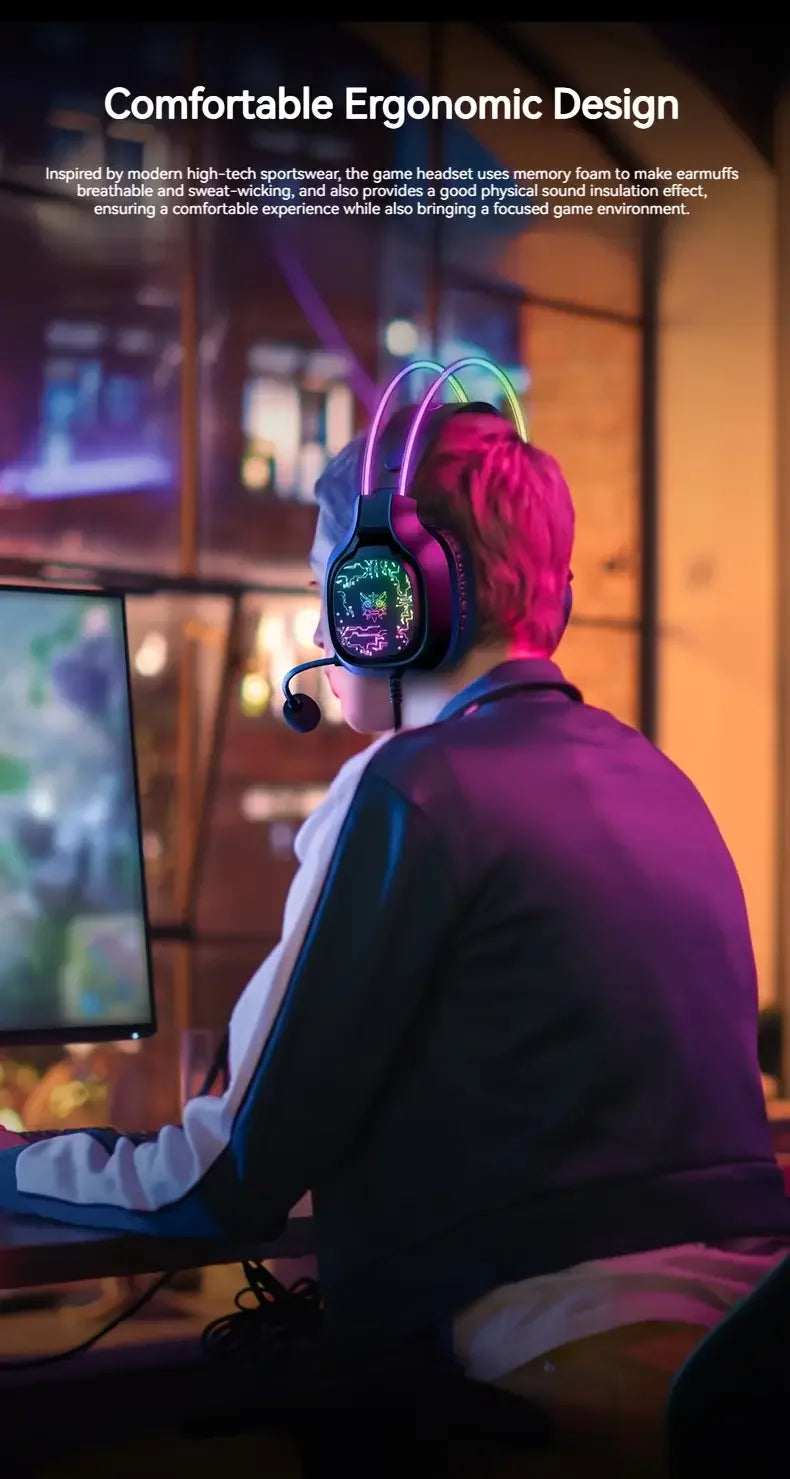 ONIKUMA X22 Gaming Headset RGB Dynamic Lighting Wired Over-Ear Adjustable Headphones With Mic 50MM For PC PS4 Xbox PS5 Gift