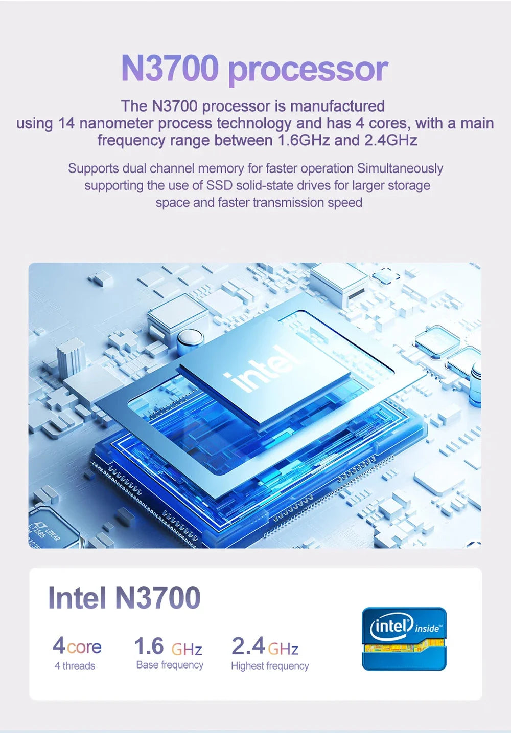 Original Laptop 15.6" 16GB RAM 2TB SSD Intel N3700 Gaming PC 1920*1080 Display Office Study Computer PC Windows 11 Pro
