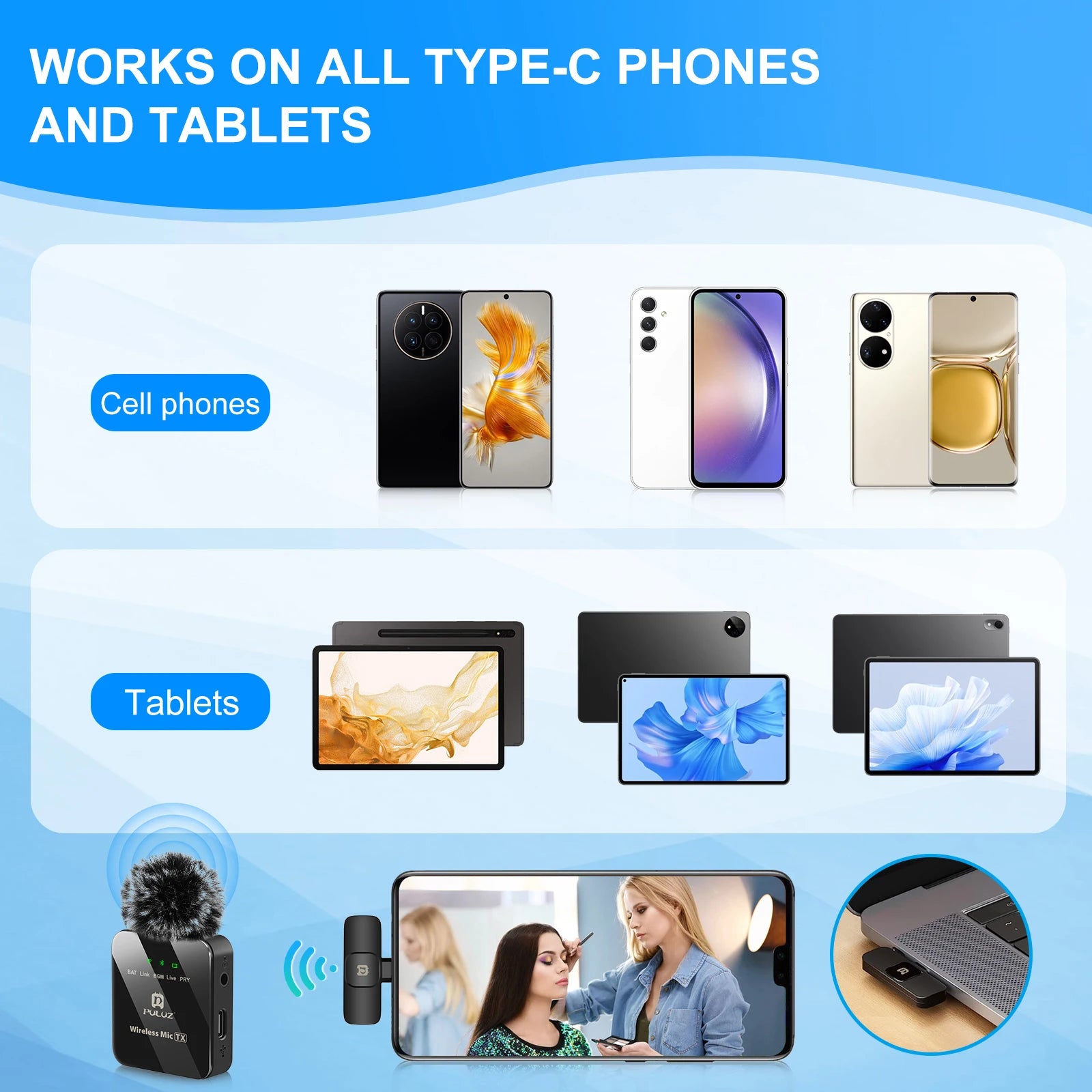 PULUZ Wireless Lavalier Microphone Portable Audio Video Recording Mini Mic for iPhone Android Outdoor Live Broadcast Phone Mic