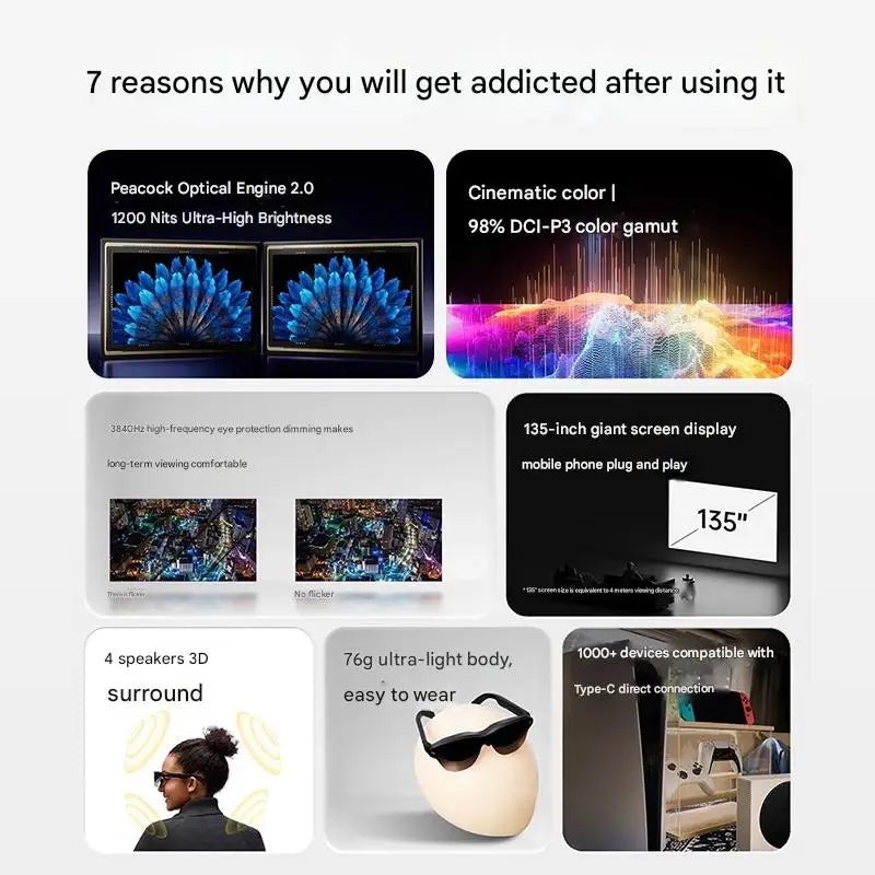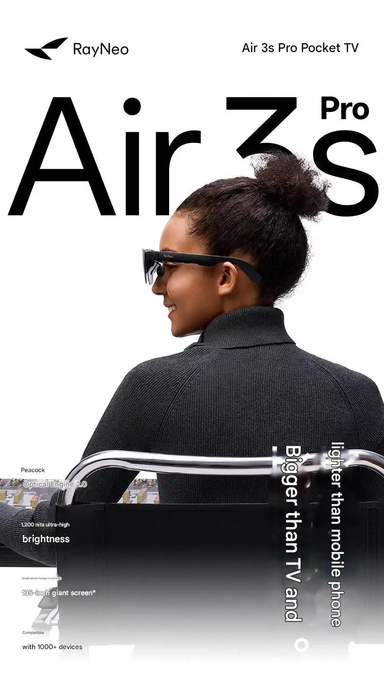 Rayneo Air3s Pro AR Smart Glasses 1200nits 135inches HD Screen 3840 Hz PWM 3D Glasses For Xbox PS5 Switch