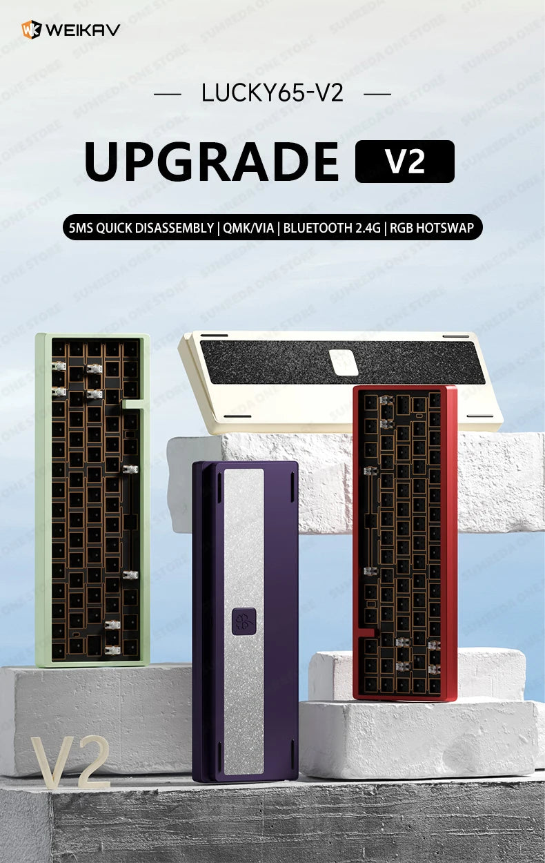 Sugar65 V2 Lucky65 V2 Aluminum Alloy Mechanical Keyboard 3-Mode Customization 2.4g Bluetooth Hotswap Gasket RGB Gaming Keyboard