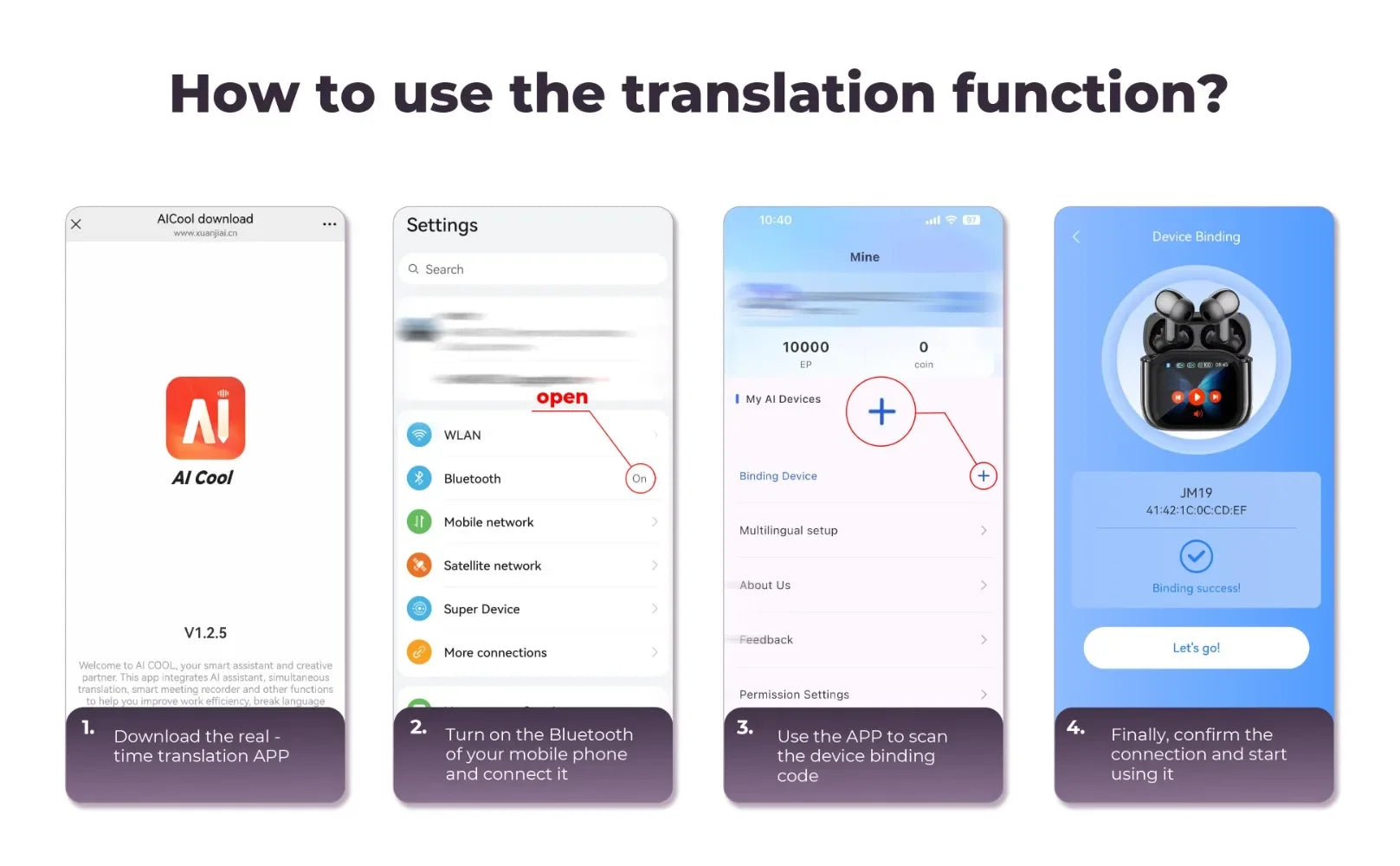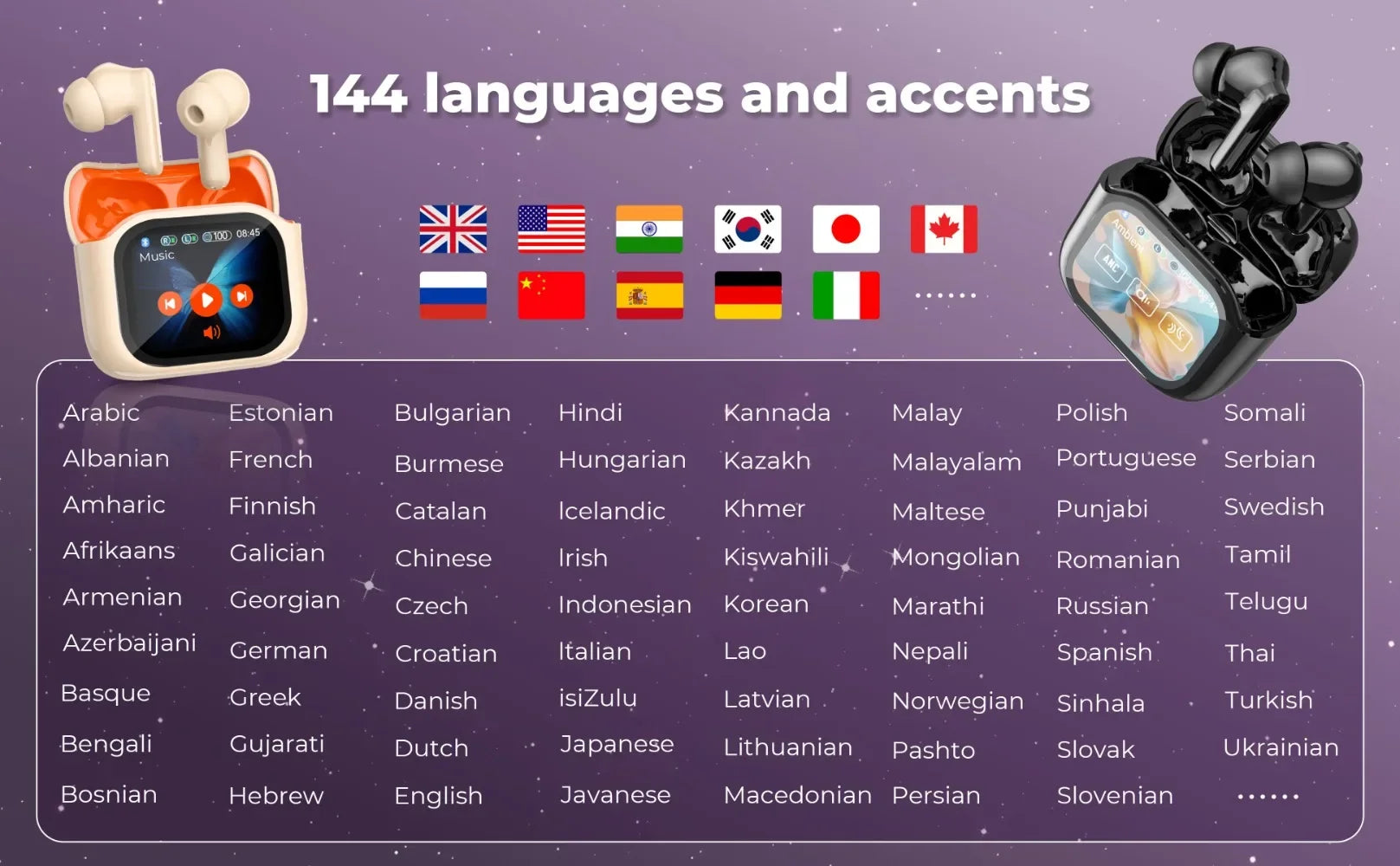 Touch Screen Translation Headphones 144 Languages Two-Way Real Time Translator Headsets Travel Business Bluetooth Earbuds