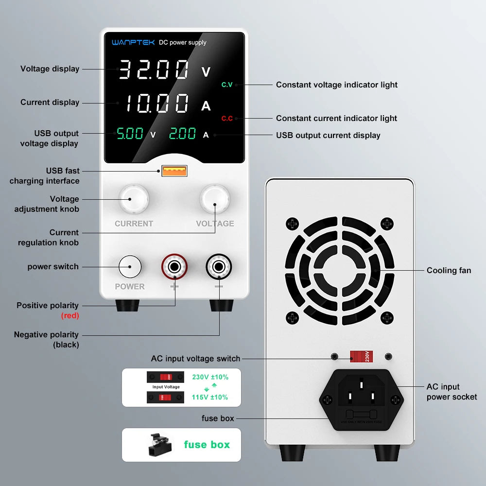 Wanptek DC Lab Power Supply 30V 60V 120V Adjustable Voltage Regulator Preset Voltage Current Dual Input Voltage 220V/110V