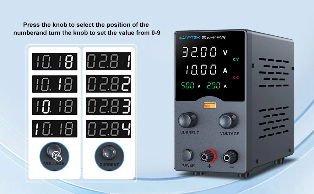 Wanptek DC Power Supply 30V 10A 5A Variable Bench Power Supply Adjustable Lab Power Supply 60V 5A 120V 3A Voltage Regulator