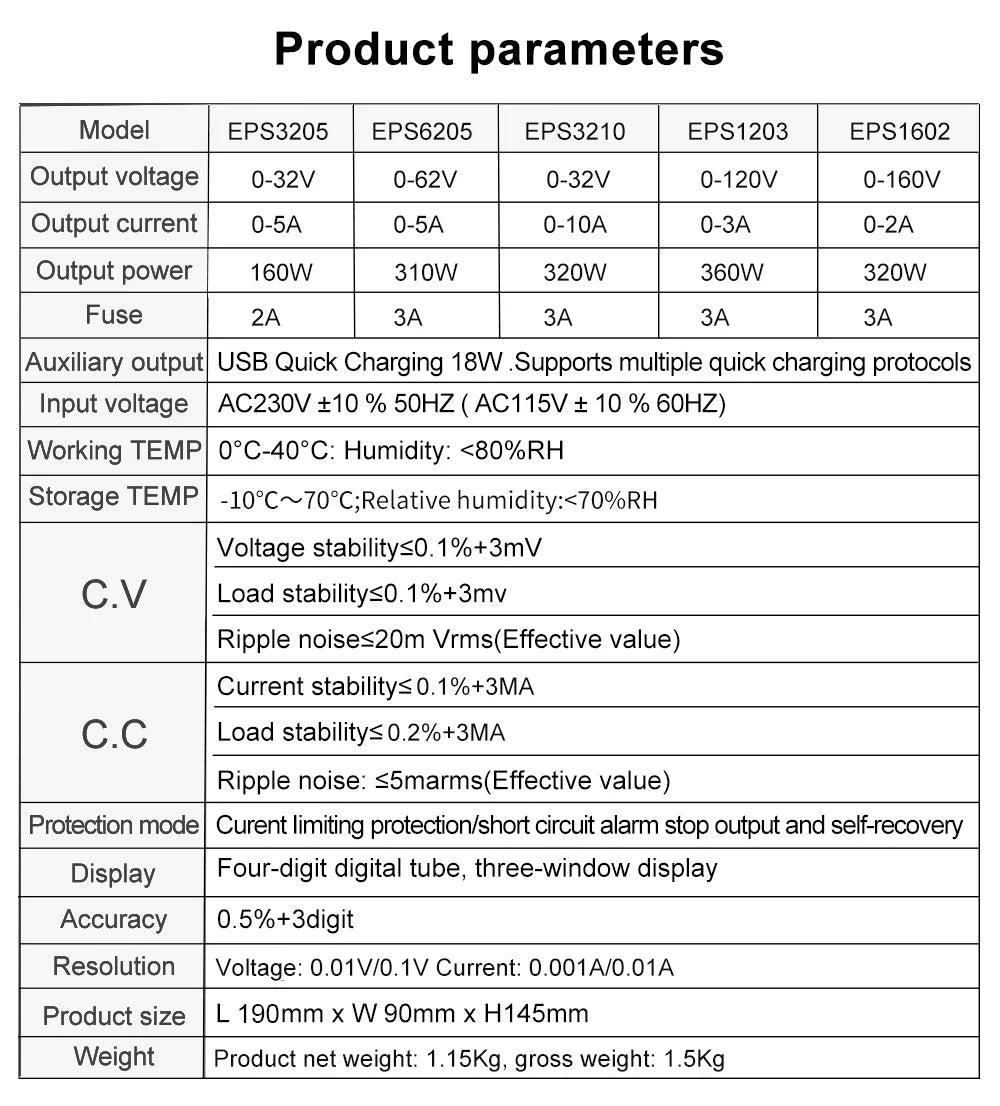 Model Number: EPS3205 EPS3210 EPS6205 EPS1203 EPS1602