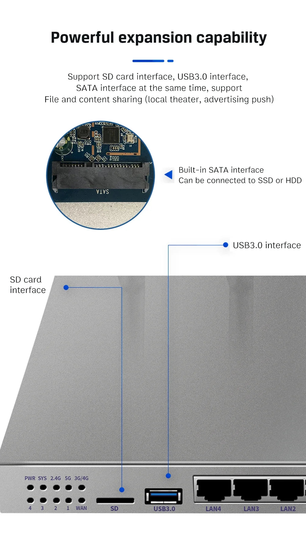 Wiflyer 4G LTE WiFi Router SIM Modem 4*Gigabit LAN WAN Dual Bands 2.4ghz 5Ghz SATA Port 5dBi Detachable Antenna for 64 Device
