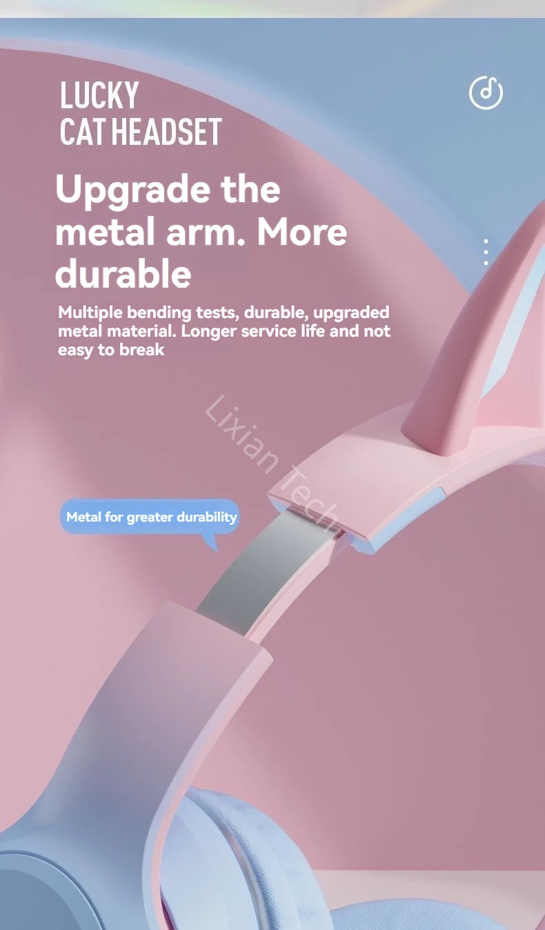 wireless Headphones RGB cute cat ear Bluetooth Earphones with microphone Stereo Music Game Earphone Girls Kids Gifts For XiaoMi