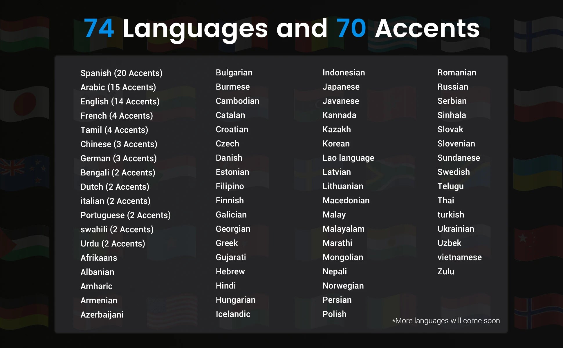 Output Language: Spanish,Chinese,Arabic,Russian,French,Korean,Portuguese,Japanese,Italian,English