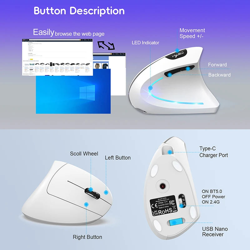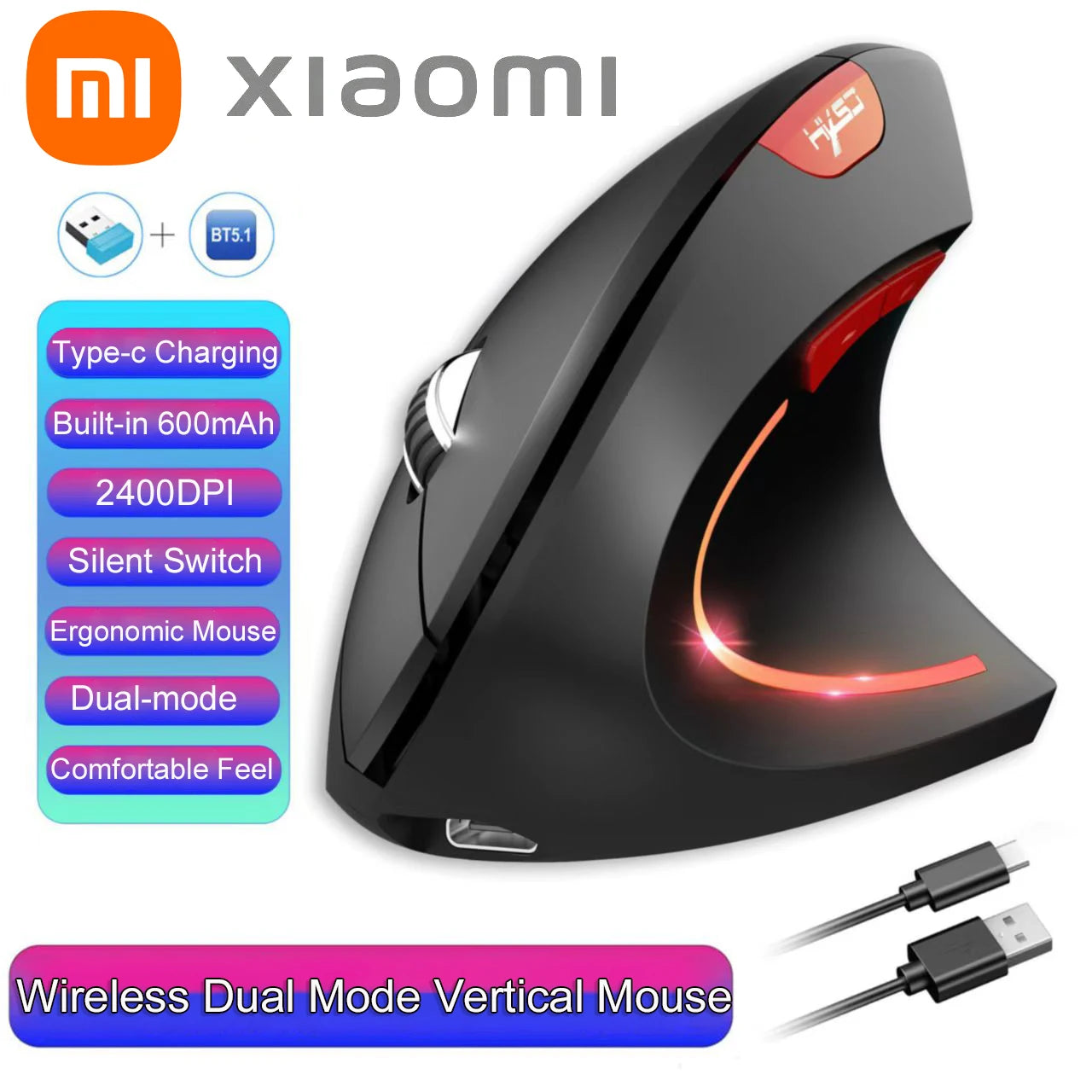 XIAOMI Dual Mode Wireless Vertical Mouse 600mAh Rechargeable Ergonomic Personalised Side Grip 2400DPI Mute Gaming Mouse For PC