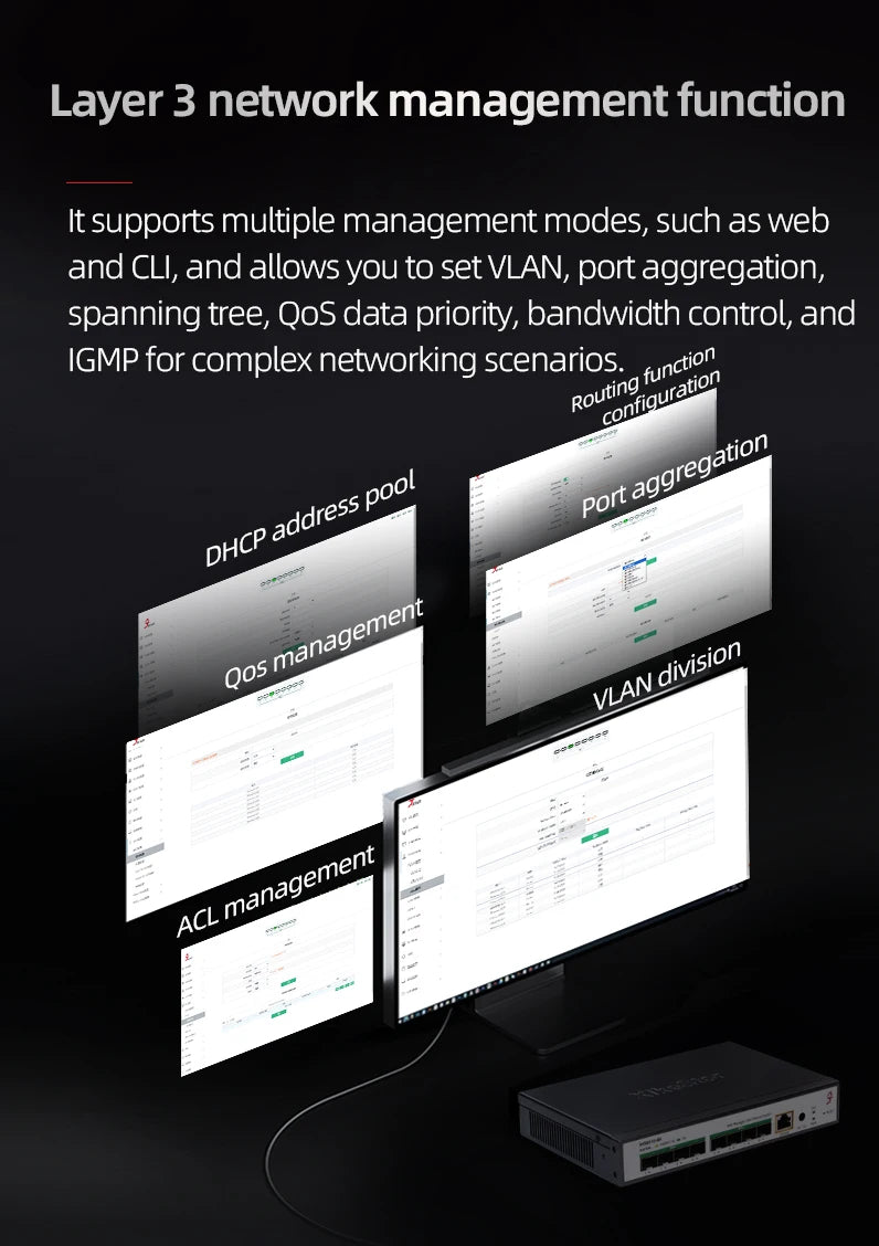 XikeStor 8 Ports 10G SFP+ L3 Managed Support DHCP/VLAN/Port Aggregation/Link Aggregation WEB/CLI Fan Heat Dissipation One-click